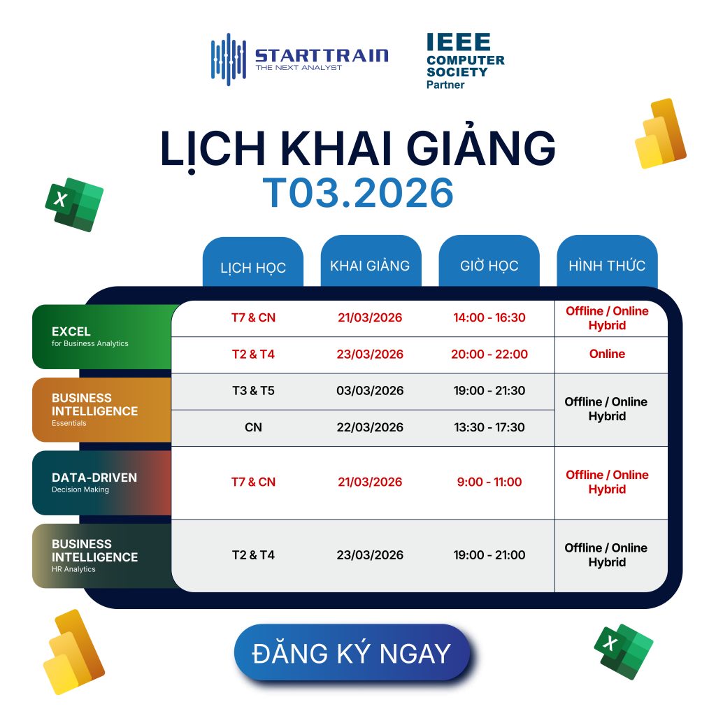Starttrain – Đơn vị đào tạo phân tích dữ liệu và trí tuệ kinh doanh hàng đầu tại Việt Nam. Tự hào đạt danh hiệu Thương hiệu Hàng đầu Việt Nam – Vietnam Top Brands 2025.