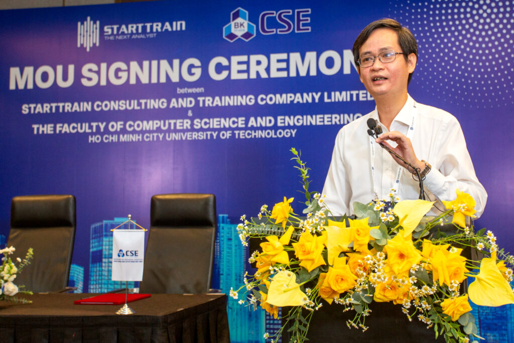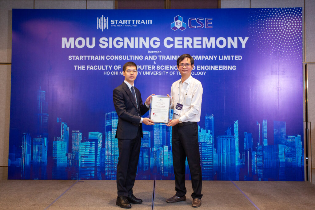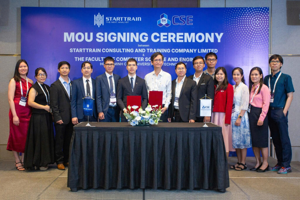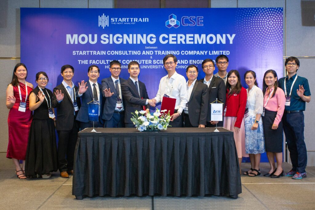 Sáng ngày 22 tháng 09 năm 2025, tại khách sạn Vinpearl Landmark 81, một sự kiện đặc biệt đã diễn ra, mở ra một chương mới đầy hứa hẹn. Lễ Ký kết Biên bản Ghi nhớ Hợp tác (MOU) giữa Starttrain và Khoa Khoa học & Kỹ thuật Máy tính – Đại học Bách khoa (HCMUT) đã thành công rực rỡ, chính thức hóa mối quan hệ đối tác chiến lược giữa hai bên. Sự kiện này không chỉ có ý nghĩa với Starttrain mà còn là một dấu mốc quan trọng trong việc nâng cao chất lượng đào tạo công nghệ tại Việt Nam.