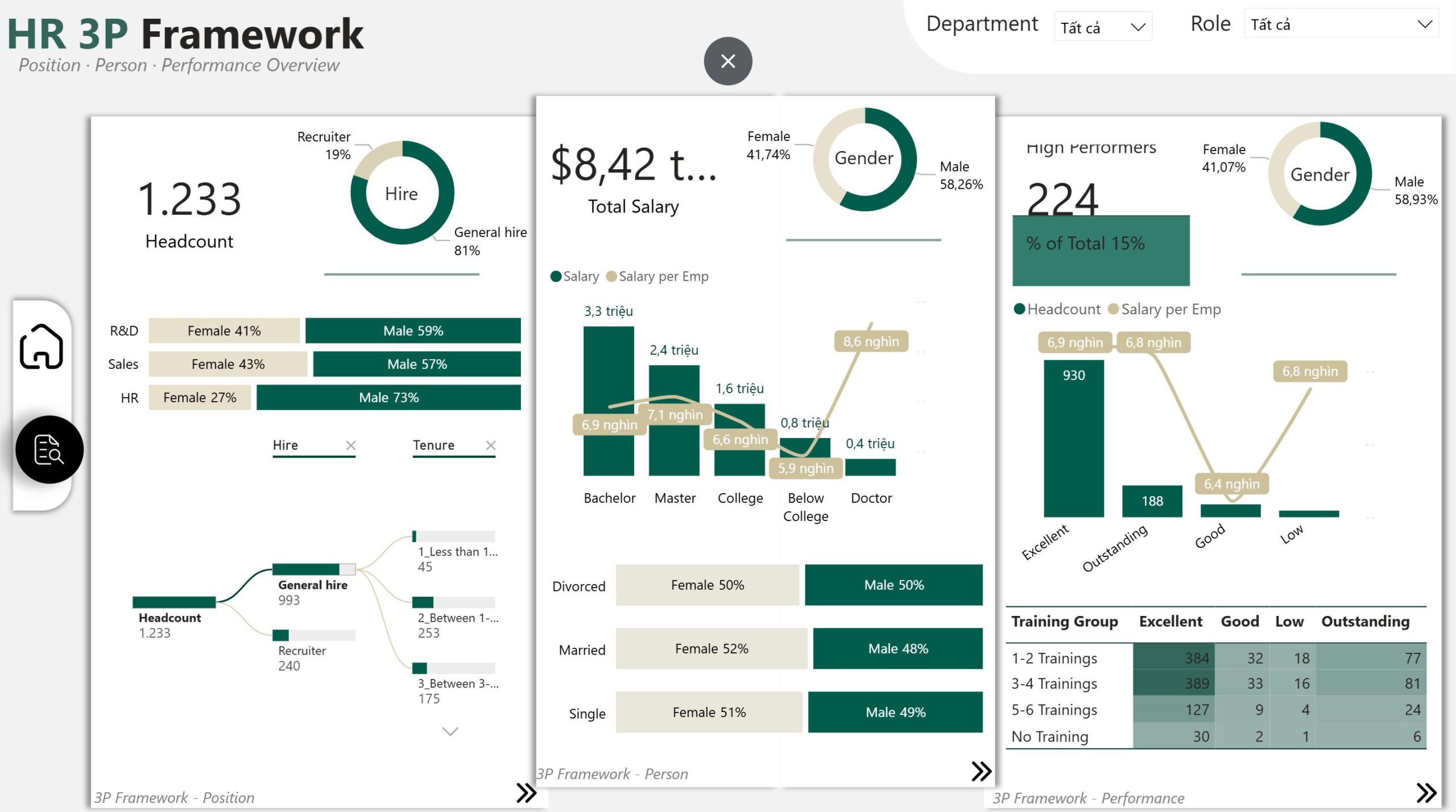 Thành thạo kỹ thuật thiết kế tương tác và điều hướng thông minh, biến báo cáo tĩnh thành một công cụ phân tích dữ liệu đa chiều, tối ưu hóa trải nghiệm sử dụng và giúp người xem chủ động khai thác insight (đặc biệt trong bối cảnh dữ liệu Nhân sự – HR)
