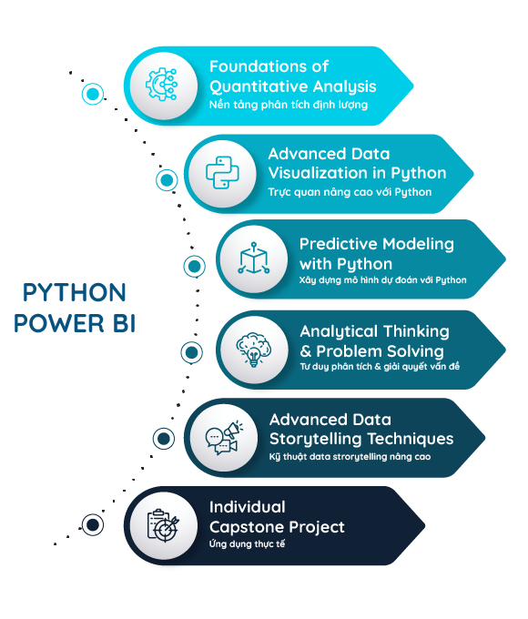 Tất cả hội tụ trong dự án cá nhân toàn diện, nơi bạn chứng minh năng lực giải quyết vấn đề thực tế: từ phân tích đến trình bày giải pháp thuyết phục. Đây là khóa học giúp bạn chuyển hóa kiến thức kỹ thuật thành tư duy phân tích có chiều sâu và giá trị thực tiễn.