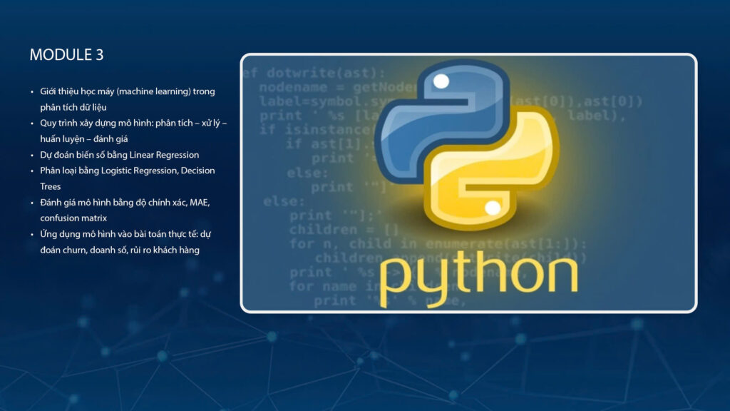 Trang bị khả năng xây dựng các mô hình dự đoán cơ bản, giúp ra quyết định dựa trên dự báo từ dữ liệu.